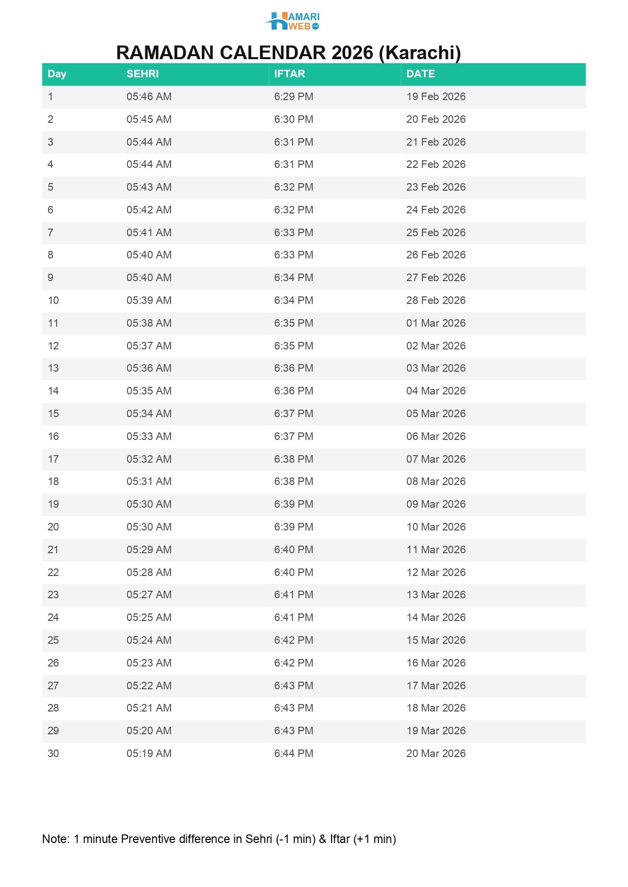 As the holy month approaches, Muslims worldwide turn their hearts and minds towards spiritual growth and strengthening their faith. To help you navigate this sacred time, we’re excited to present our Ramadan Calendar 2026 – your one-stop guide for accurate sehr o iftar dates and prayer times.